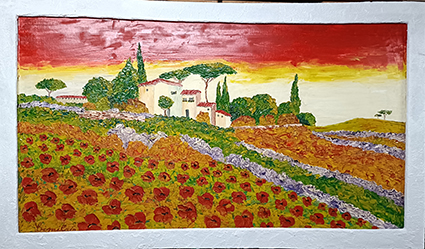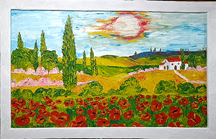 Pino Papaveri 110x50PAESAGGIO TOSCANO PAPAVERI CIELO TIPO VAN GOGH   OLIO SU TELA LAVORATO A SPATOLA            110 X 50