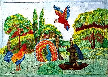 PAESAGGIO CON PAVONE PAPPAGALLO