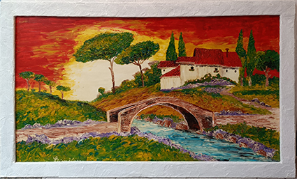 Paesaggio con pontePAESAGGIO CON PONTE OLIO SU TELA LAVORATO A SPATOLA