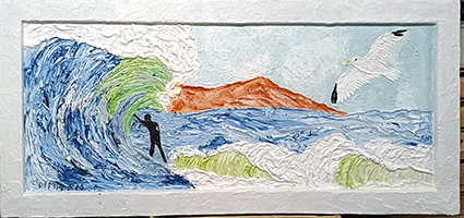 GRECIA PAESAGGIO GRCIA PAESAGGIO SUL MARE ONDA CON SERFISTA E GABBIANO